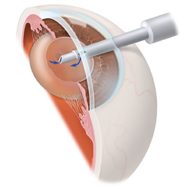 Phacoemulsification is a surgical method used to remove a cataract, which is a clouding of the eye's lens. Three very tiny openings are created and micro-instruments are used. An oscillating ultrasonic probe is inserted into the eye to break up the lens. The fragments are removed from the eye using fluid. The incisions usually do not require sutures to close because they are so small.