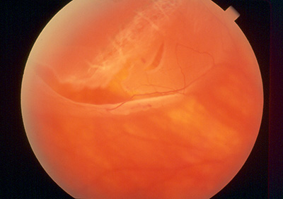 Retinal tears increase the chance of developing a retinal detachment. Fluid vitreous, passing through the tear, lifts the retina off the back of the eye like wallpaper peeling off a wall. Laser surgery is usually used to seal retinal tears and prevent detachment.